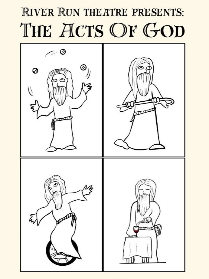 If you’re a writer (or looking to try your hand at being one) and you’re looking to take part in River Run Theatre’s first full theatrical production, then ‘The Acts of God’ is for you.